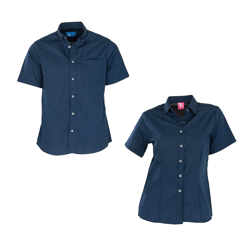 Costuras dobles, aletilla reforzada con entretela y cosida con cuatro agujas, con ojal y botón en el cuello
