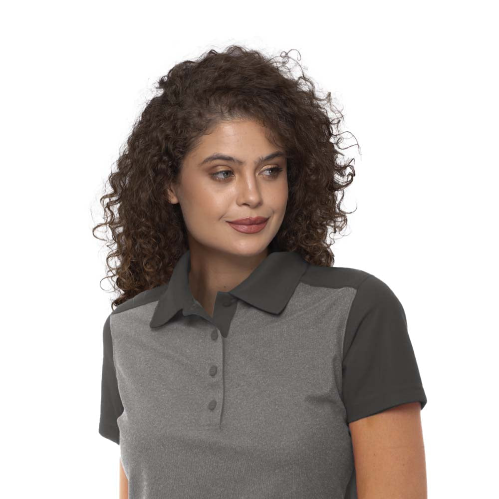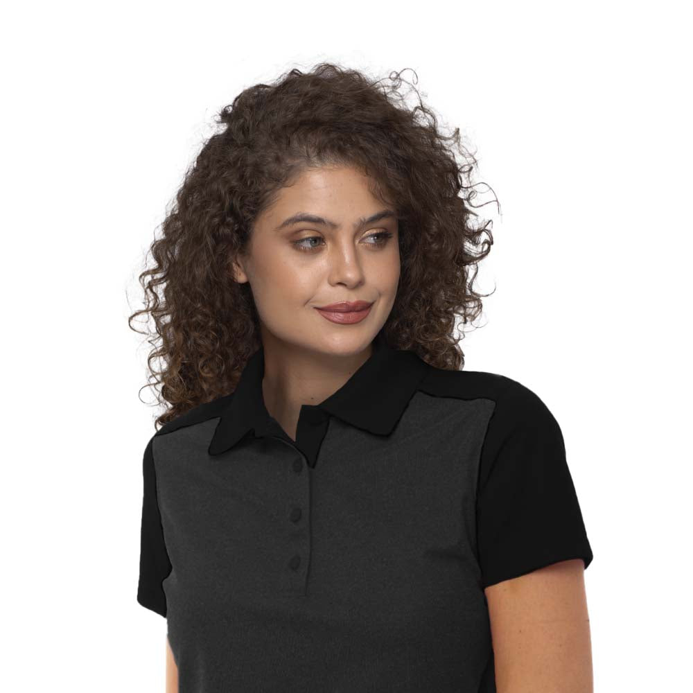 Polo Combinada para dama en 100% poliéster. Piqué liso de 160 g/m2 y piqué jaspe catiónico de 160 g/m2.